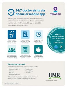 Visit www.teladoc.com or call 1-800-TELADOC to get started for a non-emergency situation for about $50 (or a low $10 copay on the Platinum health plan).