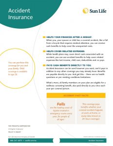 Accident insurance helps protect against the financial burden that accident-related costs can create. This means that you will have added financial resources to help with expenses incurred due to an injury, to help with ongoing living expenses, or to help with any purpose you choose. Claims payments are made in flat amounts based on severity of accident and services incurred.