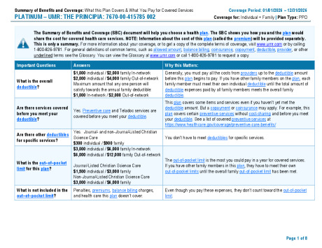 | Christian Science CarePractitioners, nurses and nursing facilities | Subject to a lower CS deductible ($300/$900) and out-of-pocket max ($1,500/$3,000); CS and medical deductibles are integrated | Integrated CS and medical deductibles are the same | Integrated CS and medical deductibles are the same | Subject to a lower CS deductible ($300/$900) and out-of-pocket max ($1,500/$3,000); CS and medical deductibles are integrated |