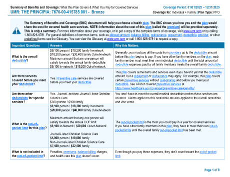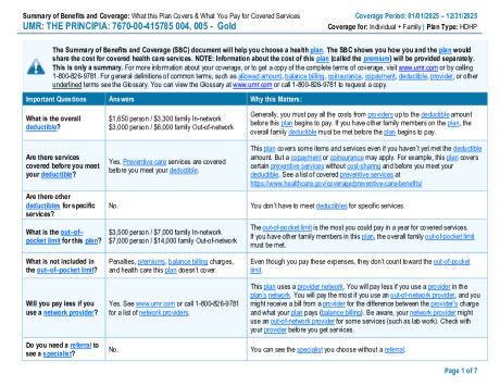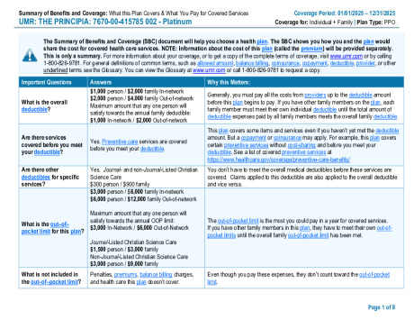 Principia offers four health plans through UMR, which provides a robust national network of doctors, hospitals and facilities. All of your claims will be administered by UMR.