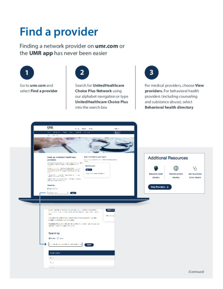 Find an in-network provider on www.umr.com using the UnitedHealthcare Choice Plus Network.ย