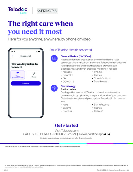 Healthcare Telehealth thru Teladoc Primary Care doctor Specialist Urgent Care Emergency Room |